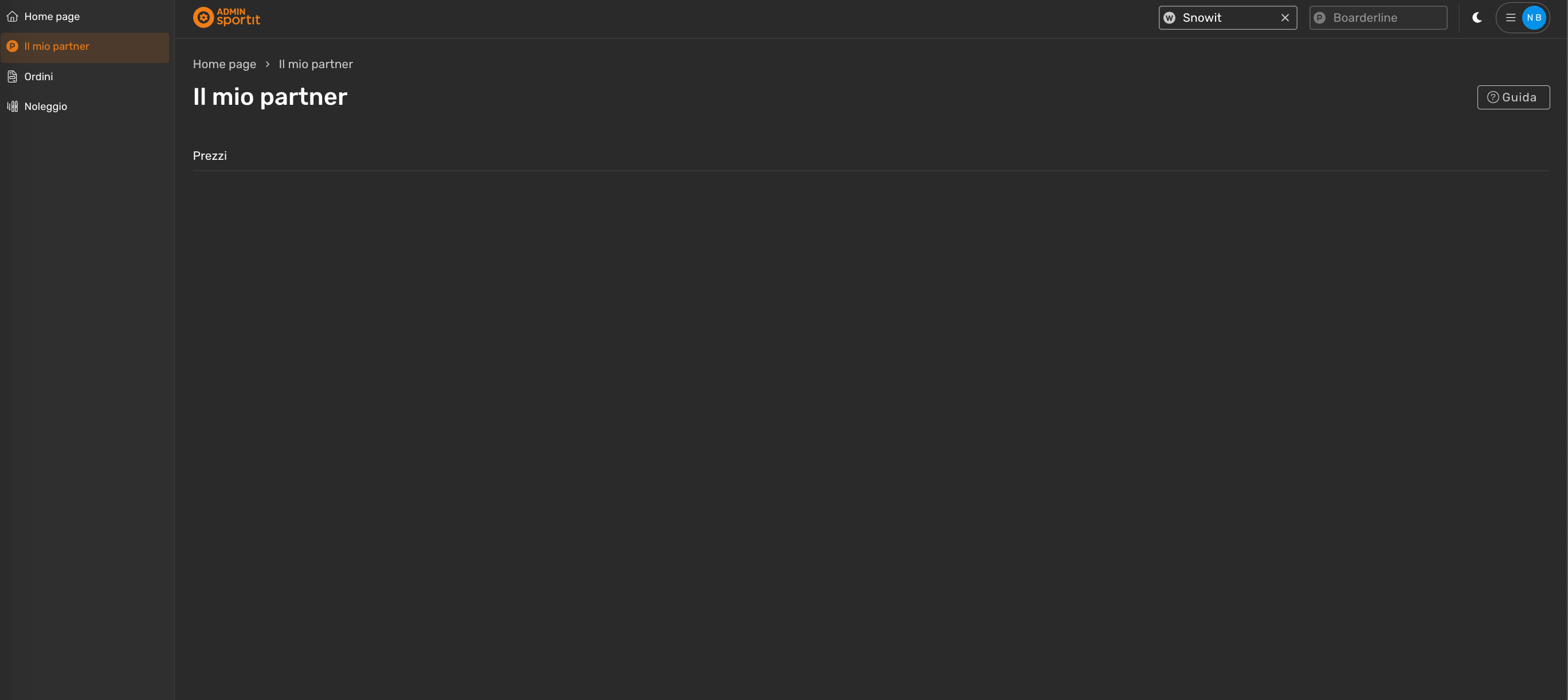 Dopo aver effettuato l'accesso con le credenziali, sulla sezione "il mio partner" si presenterà la seguente schermata: